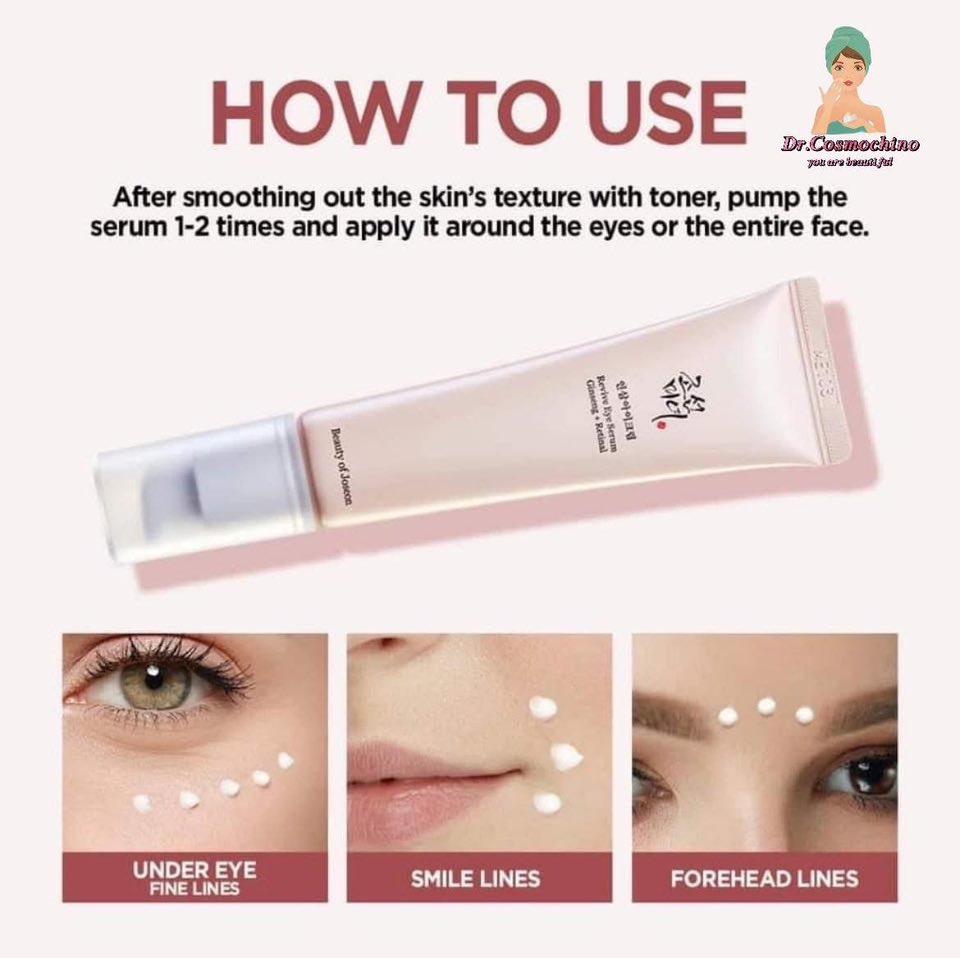 الجينسنج هو المكون الأساسي في سيرم العين لأن هناك دراسات متعددة بتقول أن الجينسنغ فعال في تحسين التجاعيد بسبب احتوائه على كميات وفيرة من السابونين(saponins).